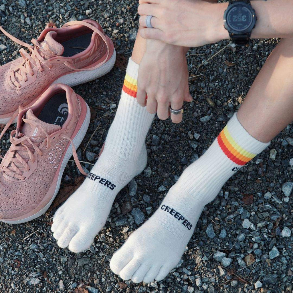 After working on my foot health with the foot collective, my toes began to feel cramped in my beloved merino icebreaker socks. So I went looking for Merino toe socks, and this season hiked in creepers, Injinji, and XOtoes. I found the creepers so comfortable I didn't think they would be as durable as the others, but they ended up being my favorites with the best comfort and blister prevention. After backpacking with the same two pairs for several hundred miles, I'm not seeing any significant wear. Now I wear them all the time. I'm looking forward to more fun colors and was very sad to miss the purple while I was on the Colorado Trail!