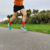 The breathable mesh upper in our socks means less weight as well as enhanced breathability and temperature regulation